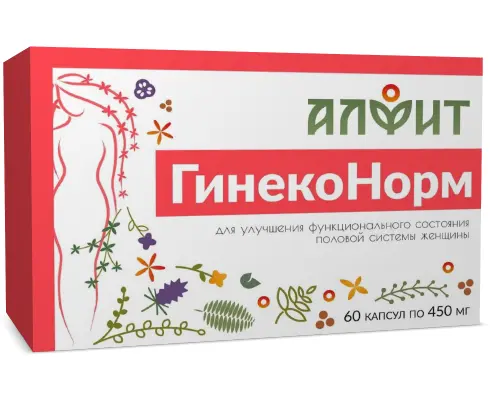 Описание БАД Фитосборы в капсулах Гинеконорм (блистер), 60 капсул по 450 мг, Алфит
