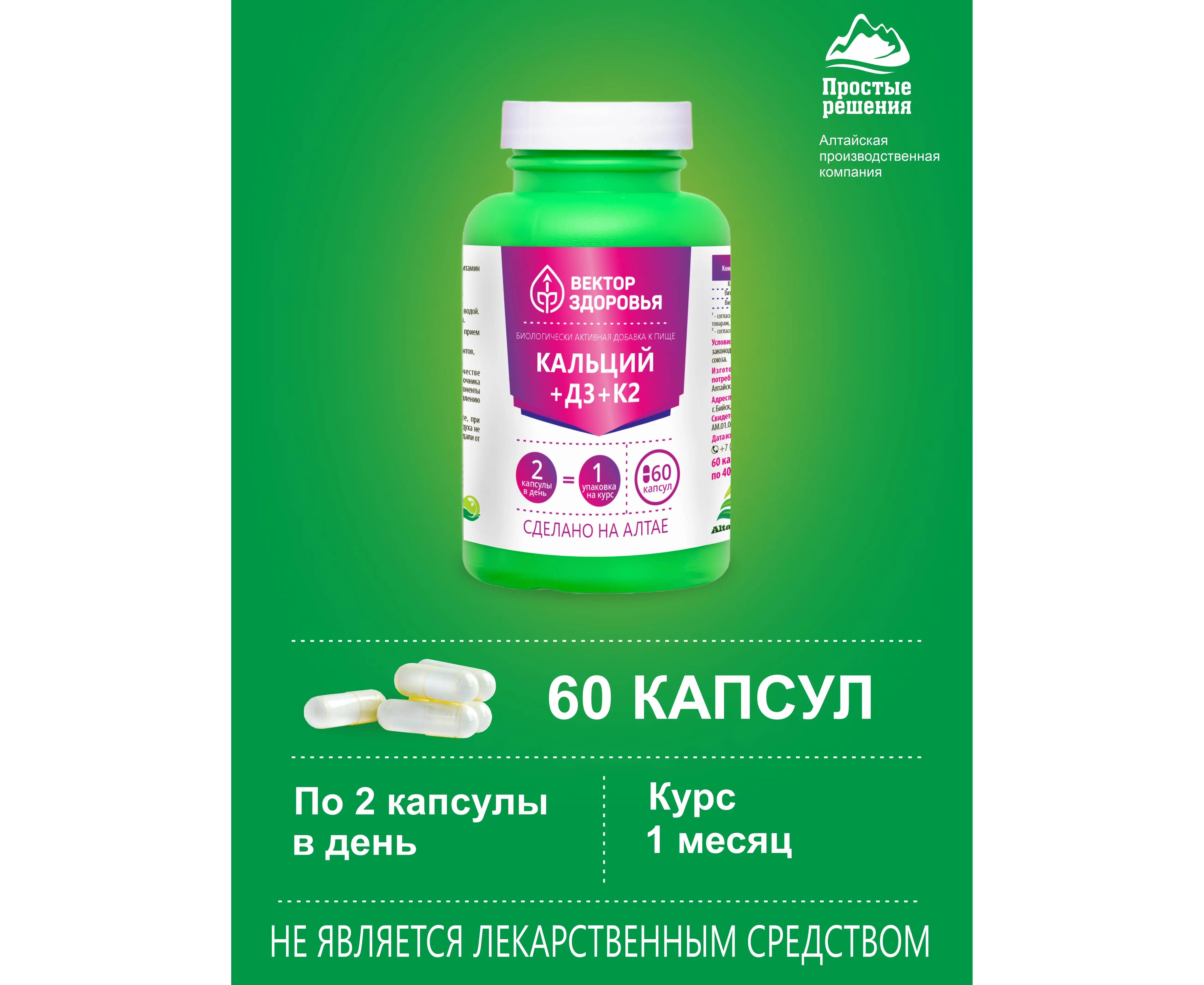 Описание Комплекс Кальций+Витамин D3+Витамин К2, 60 капсул