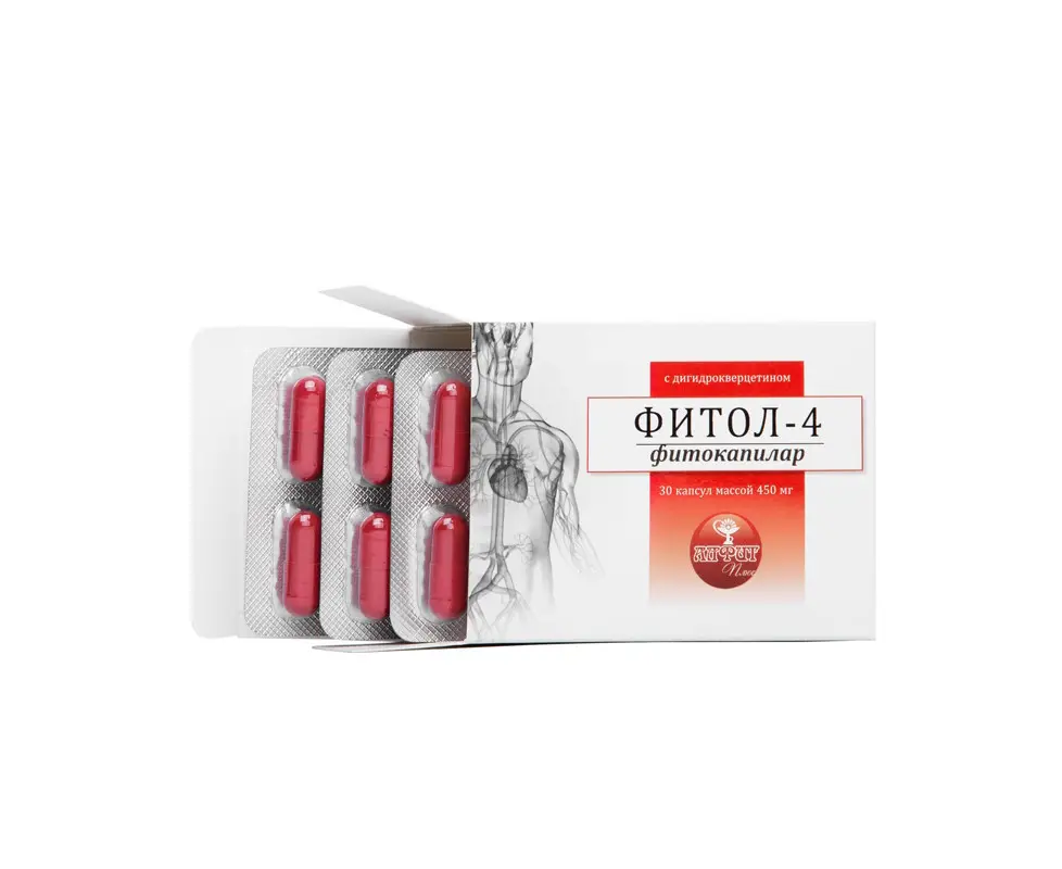 Фитосбор в капсулах Фитол-4 Фитокапилар, для профилактики и лечения тромбофлебита, 30 капс по 450 мг