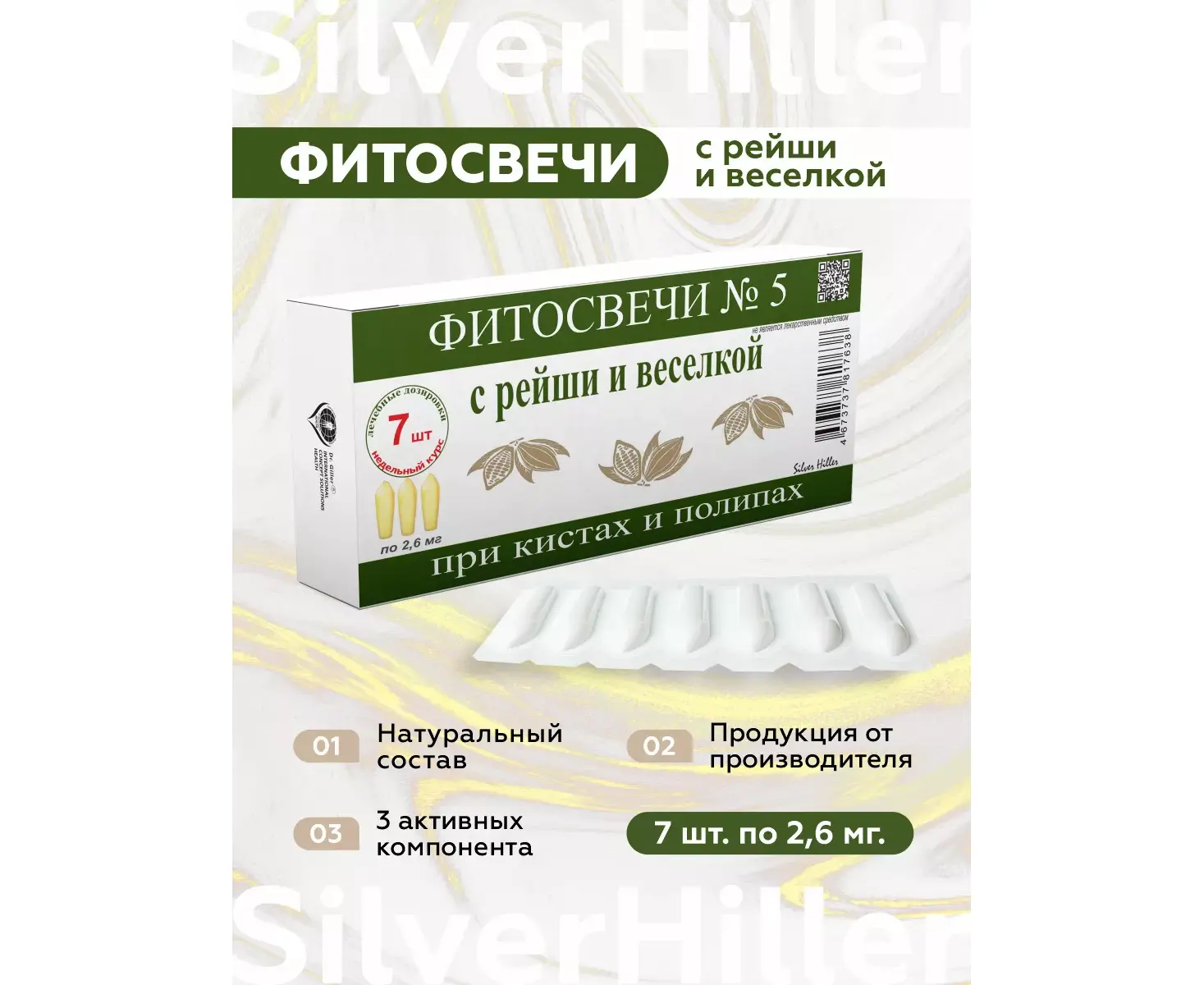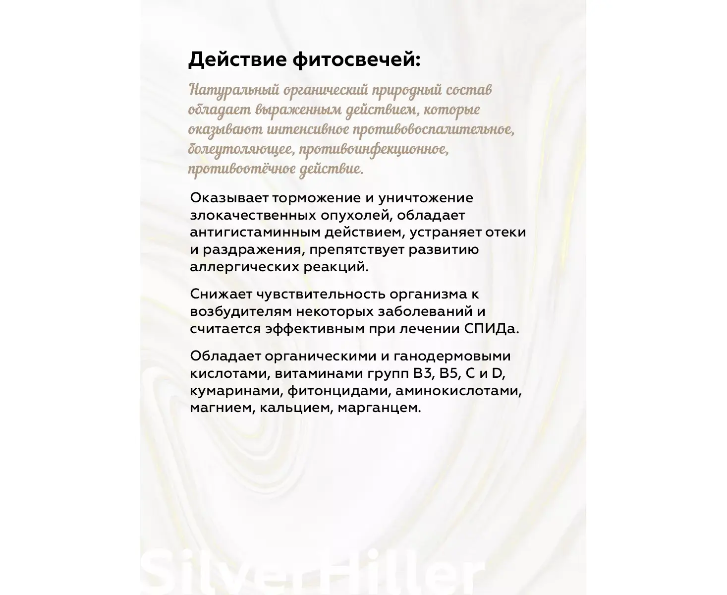 Описание Фитосвечи № 5 (при кистах и полипах) с рейши и веселкой, 7 шт., Silver Hiller