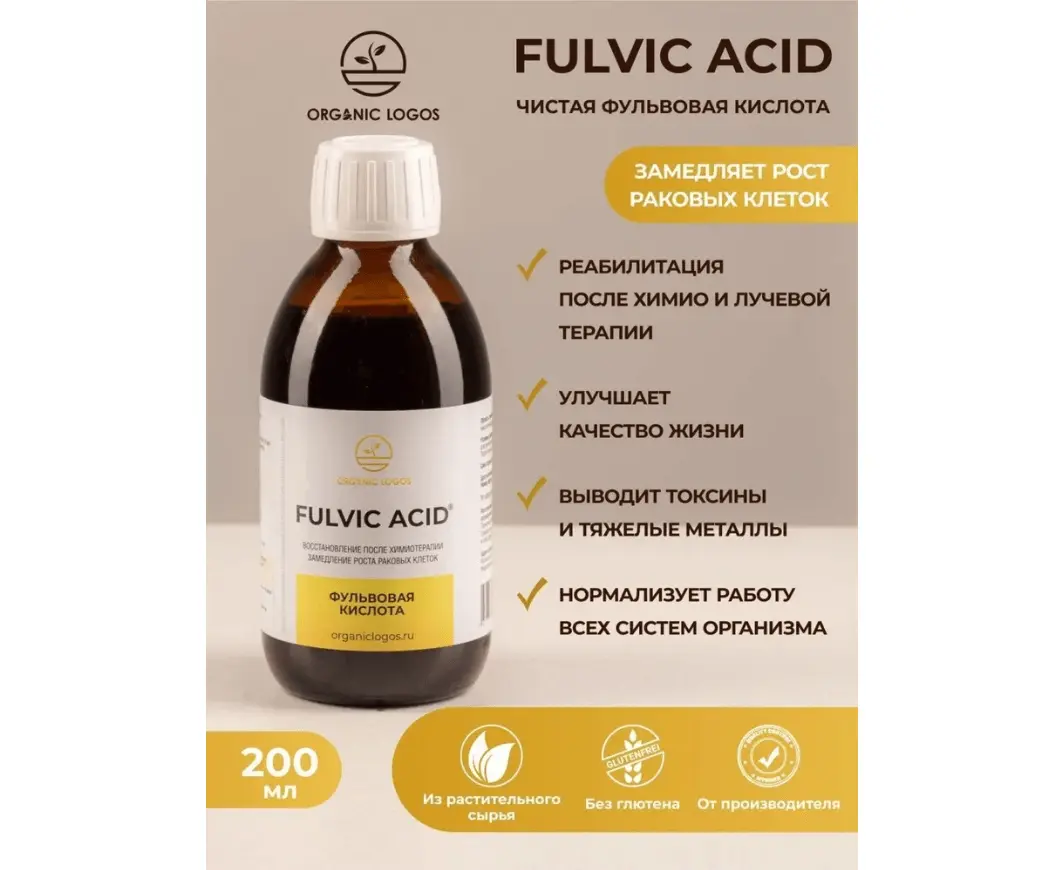Описание Фульвовая кислота. Детоксикация организма, раствор 200 мл., Органик Логос.