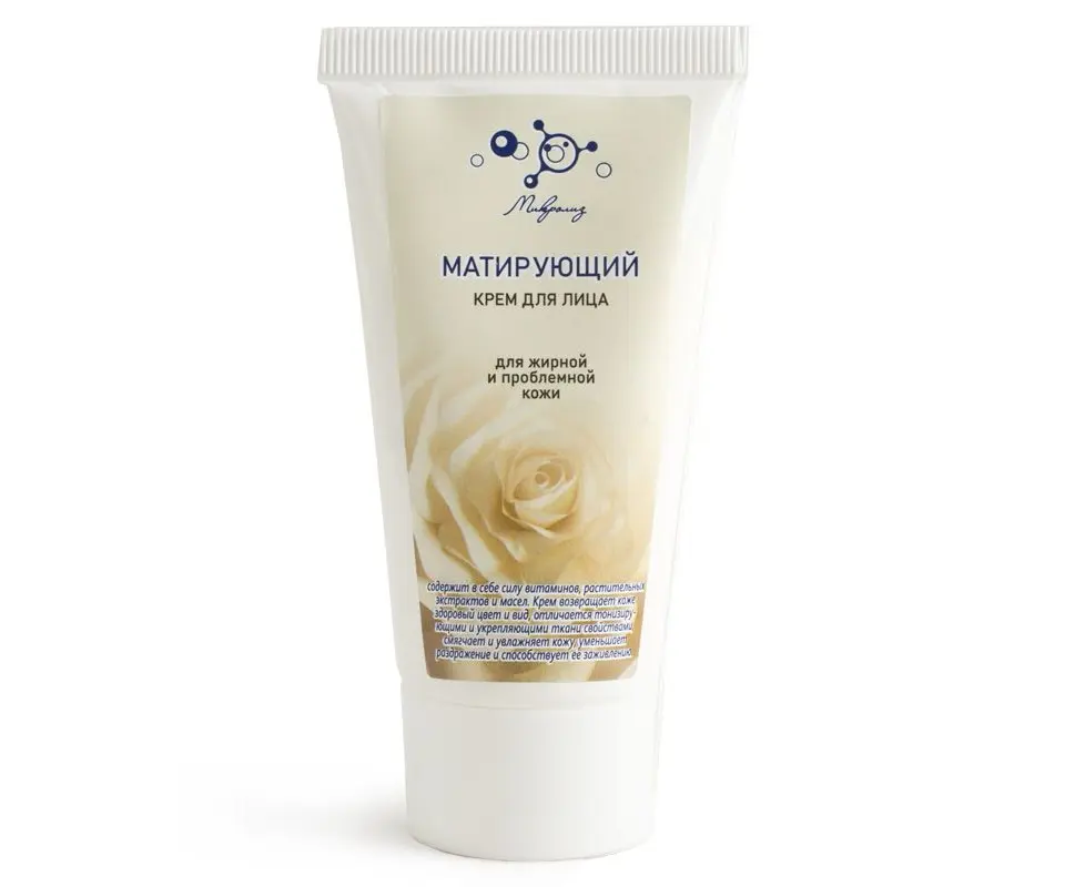Крем МАТИРУЮЩИЙ для жирной и проблемной кожи, содержит в себе силу витаминов, растительных экстрактов и масел. Крем возвращает коже здоровый цвет и вид, отличается тонизирующими и укрепляющими ткани свойствами, смягчает и увлажняет кожу, уменьшает раздражение и способствует её заживлению.