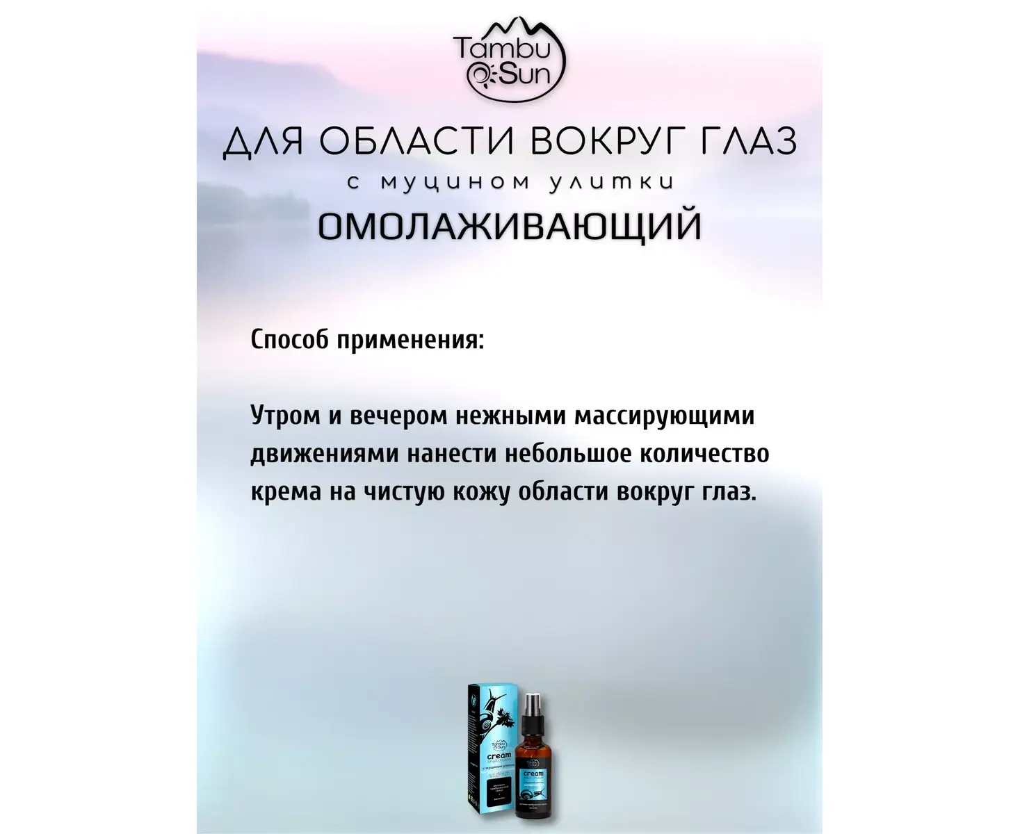 Описание Крем с муцином улитки для области вокруг глаз Омолаживающий, 50 мл, TambuSun