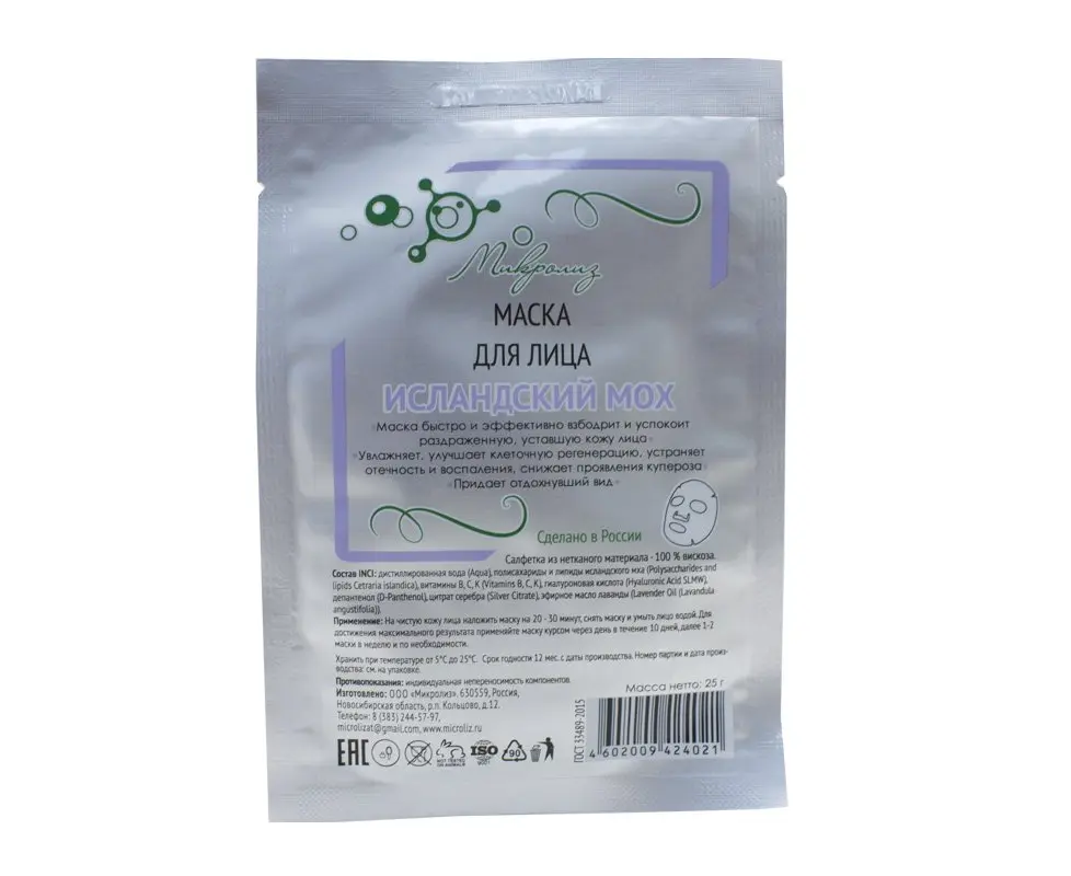 Описание Маска для лица «Исландский мох» (ткань), 25 гр., Микролиз
