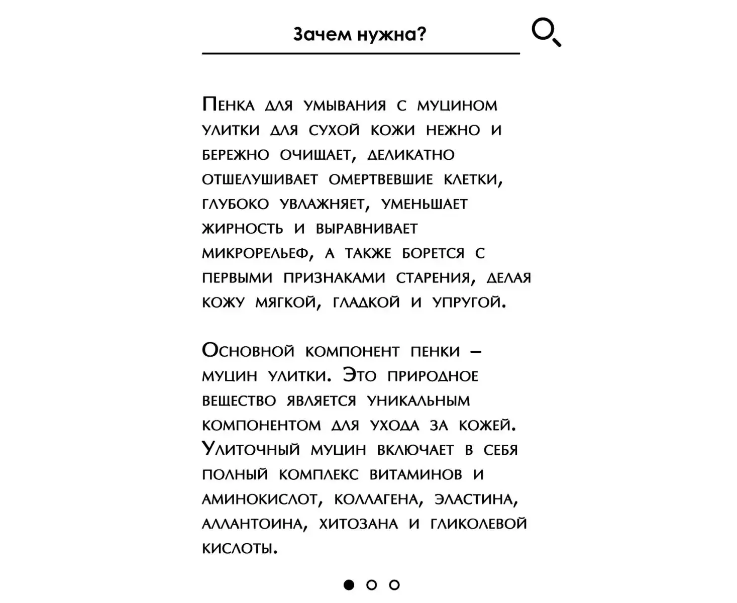 Пенка для умывания с муцином улитки для сухой кожи нежно и бережно очищает, деликатно отшелушивает омертвевшие клетки, глубоко увлажняет, уменьшает жирность и выравнивает микрорельеф, а также борется с первыми признаками старения, делая кожу мягкой, гладкой и упругой. Основной компонент пенки – муцин улитки. Это природное вещество является уникальным компонентом для ухода за кожей.