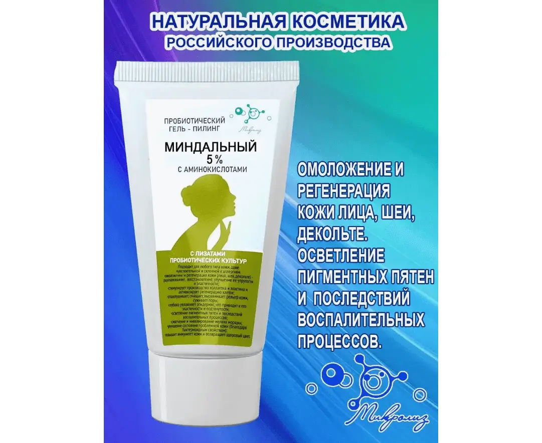 Описание Пробиотический гель-пилинг МИНДАЛЬНЫЙ 5% с аминокислотой, туба 50 мл, Микролиз