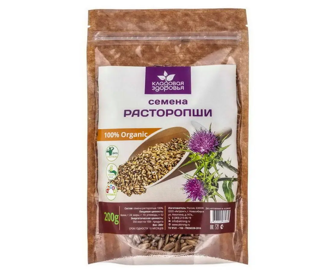 Описание Семена расторопши 200гр, Кладовая здоровья