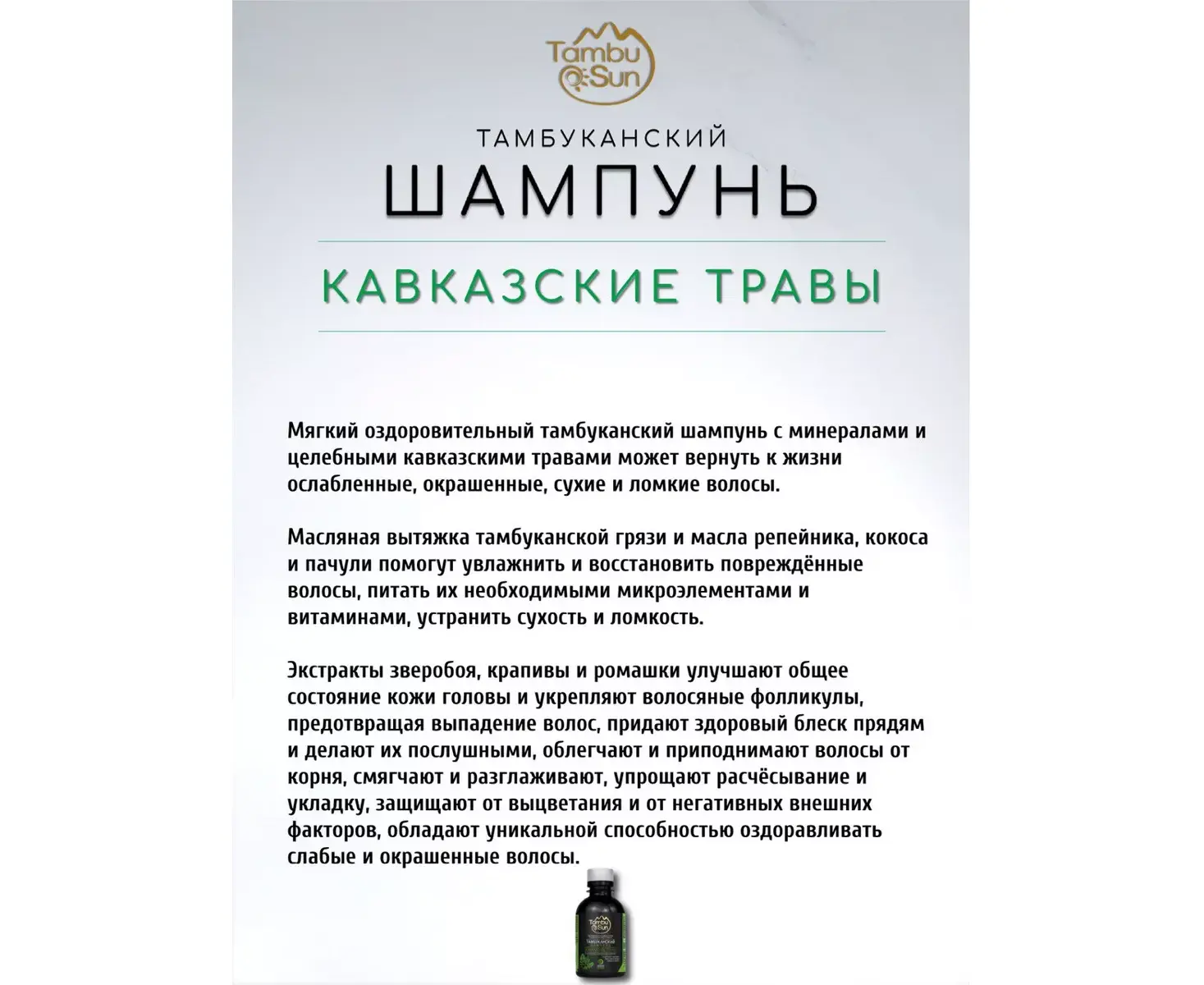 Описание Шампунь для волос Кавказские травы, 500 мл, TambuSun