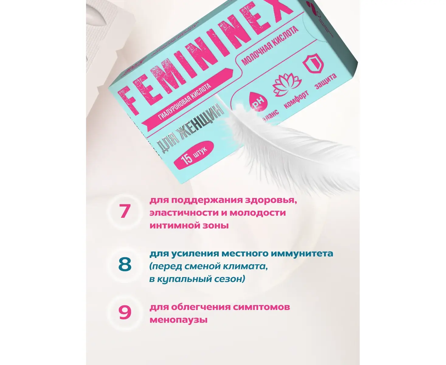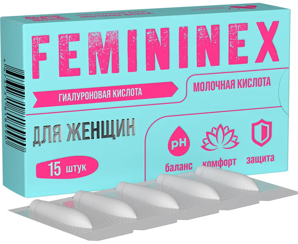 Описание Свечи Фемининекс гиалуроновые с молочной кислотой (для женщин), 15 шт