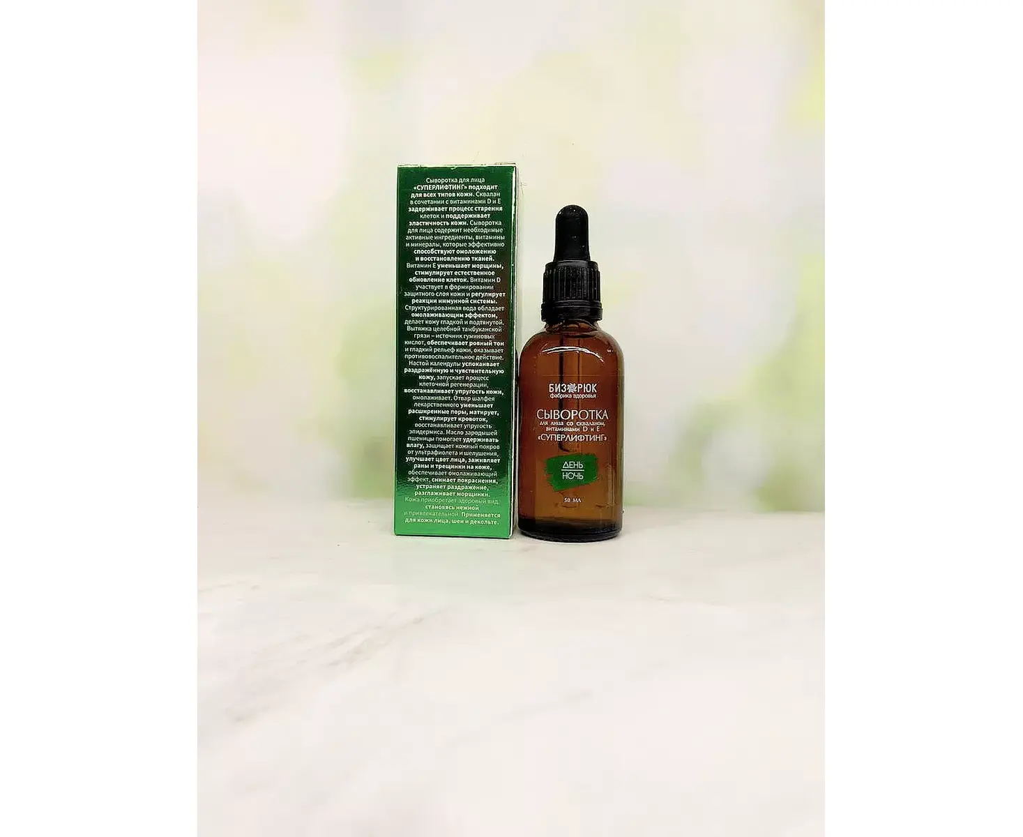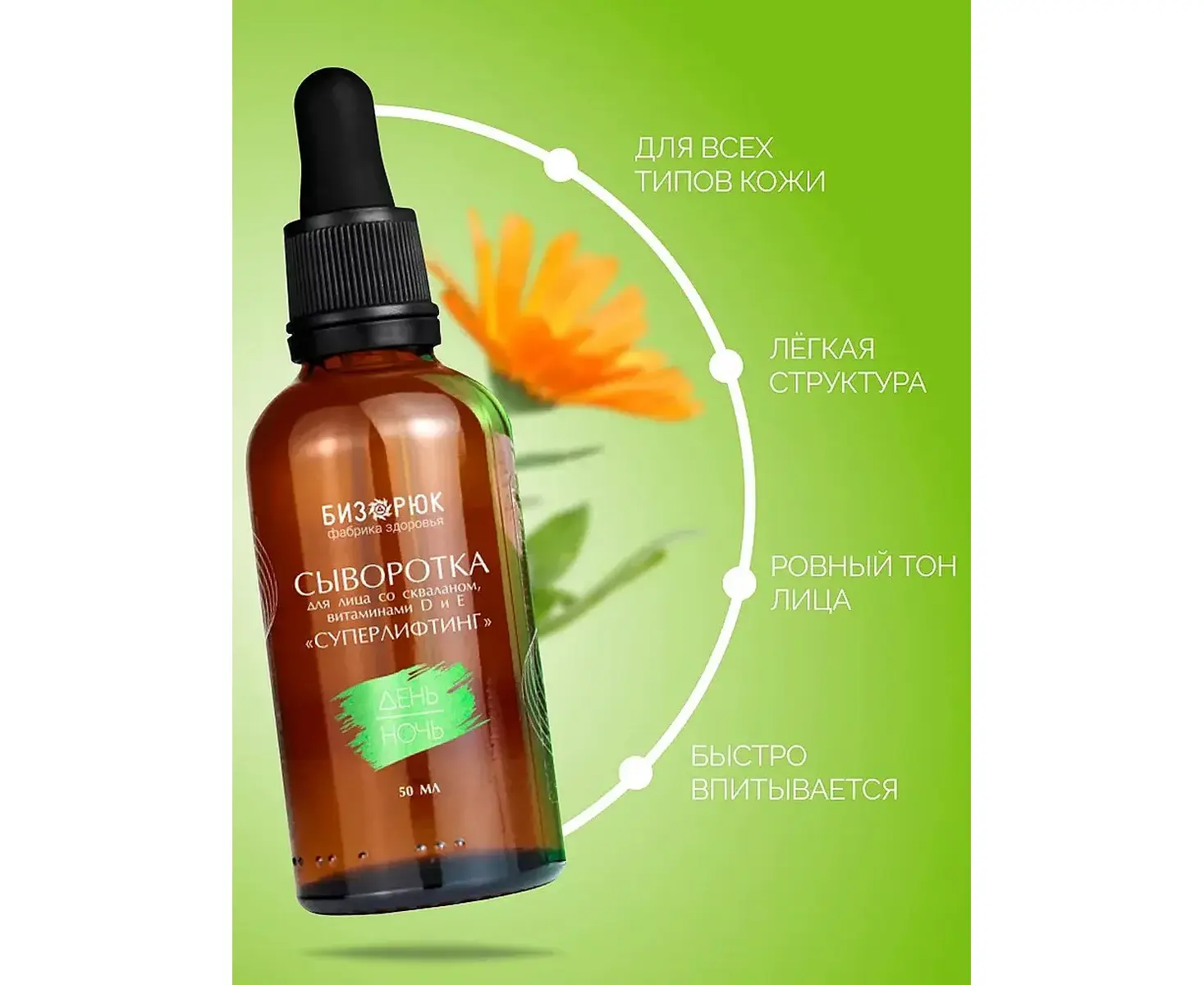 Описание Сыворотка суперлифтинг для лица (сквалан, D и Е), 50 мл, Бизорюк