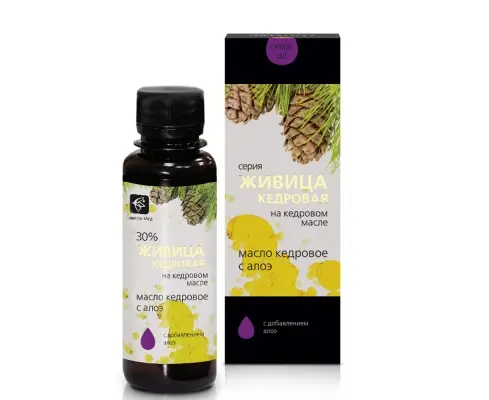 Состав: масло кедровое – 60%, живица кедровая – 30%, мякоть алоэ – 10