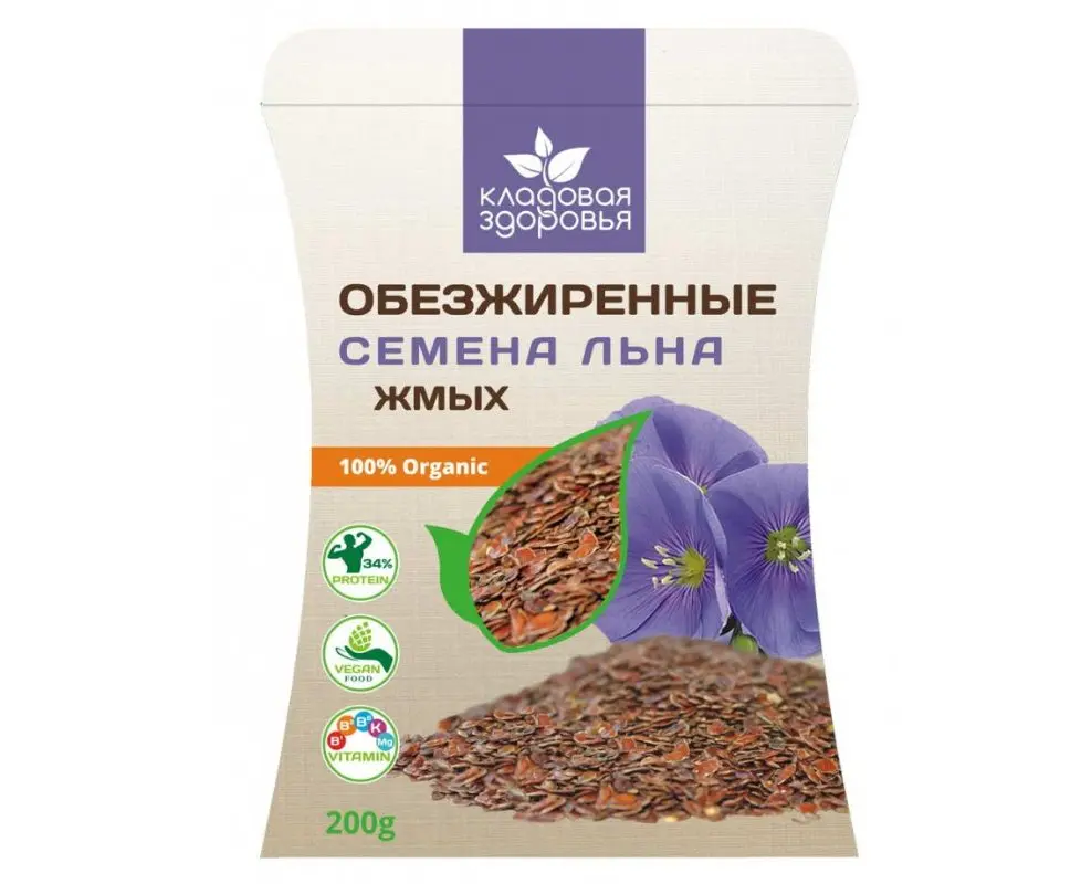 Описание Жмых льняной 200гр, Кладовая здоровья