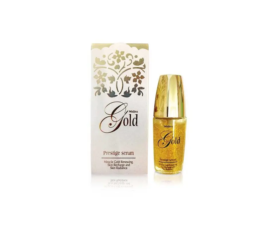 Prestige Serum Gold Mistine шикарная многофункциональная, нежная сыворотка для тех, кто мечтает притормозить процессы старения кожи. Борьба со старением с помощью драгоценных металлов известна еще со времен Клеопатры, но только около 10 лет назад золото научились применять в виде нано молекул, для более быстрого его проникновения в кожу.