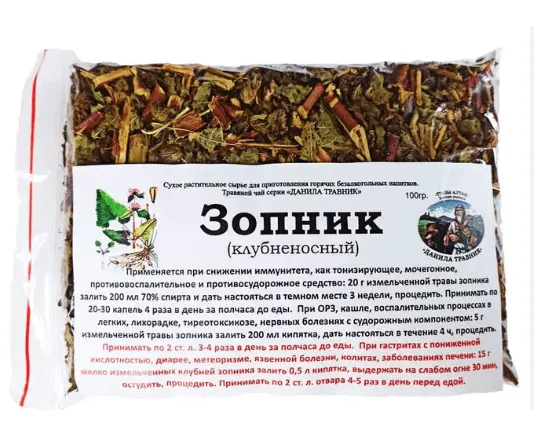 При гастритах с пониженной кислотностью, диарее, метеоризме, язвенной болезни, колитах, заболеваниях печени: 15 г мелко измельченных клубней зопника залить 0,5 л кипятка, выдержать на слабом огне 30 мин, остудить, процедить. Принимать по 2 ст. л. отвара 4-5 раз в день перед едой.